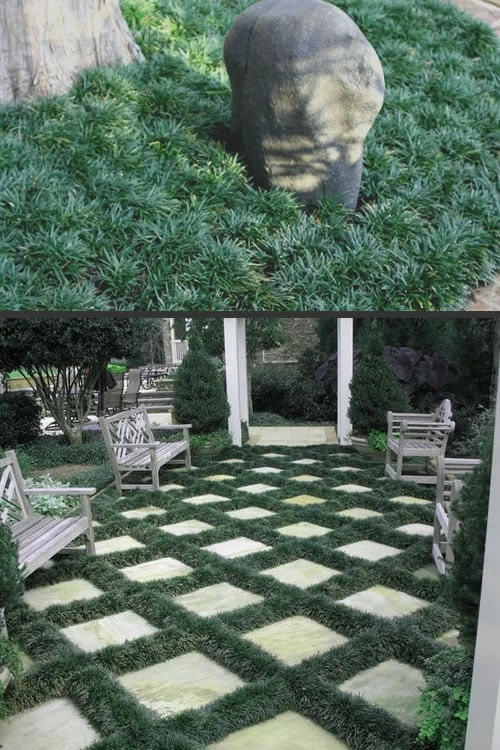 Growing only 2 inches tall and spreading slowly over a period of 3 years to a foot or more, Dwarf Mondo Grass is the perfect choice to fill the gaps between stepping stones and pavers. It holds up very good to foot traffic and will not spread across the surface of the stones or pavers as many other spreading groundcover plants will do. It is also great for use as an underplanting for shrubs or trees, such as Japanese Maples. Also useful as a soil cover in containers, where it serves as a cute little patch of “turf.”